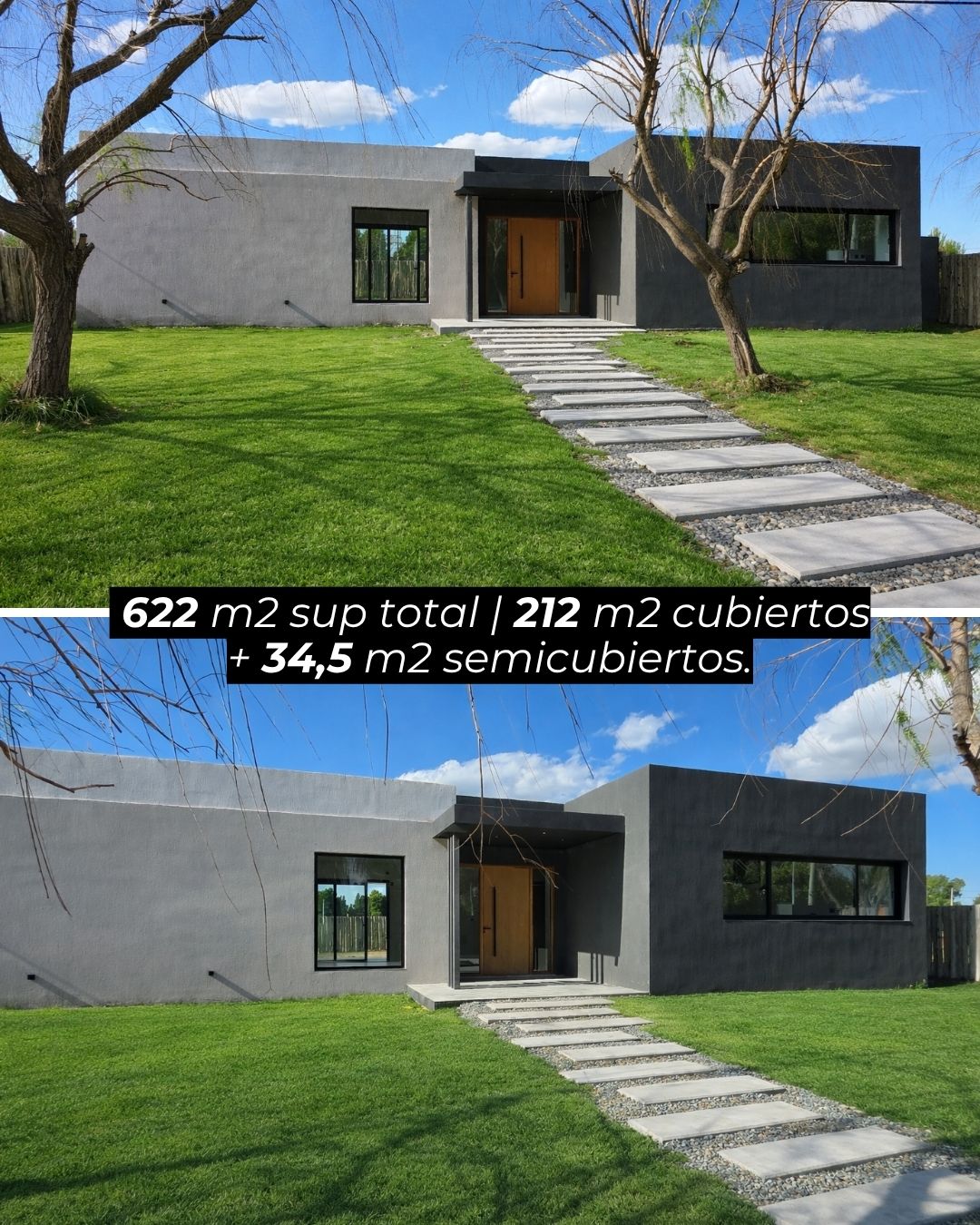 Desarrollada sobre un lote de 622 m², con 212 m² cubiertos y 34,5 m² semicubiertos, ofrece ambientes amplios, funcionales y con excelente conexión interior-exterior.