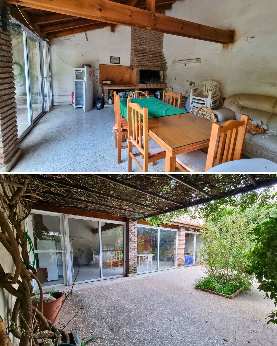 Al ingresar nos encontramos con un amplio living, (por el cual se puede circular hacia la zona de comedor y cocina y hacia los dormitorios), comedor, amplia cocina separada (la cual cuenta con un espacio pequeño con segunda cocina con bacha y lavadero independiente), 3 dormitorios, vestidor, baño completo, segundo baño con box de ducha, jardín de invierno, garaje cubierto para 2 vehículos con fogón, patio y amplio quincho.